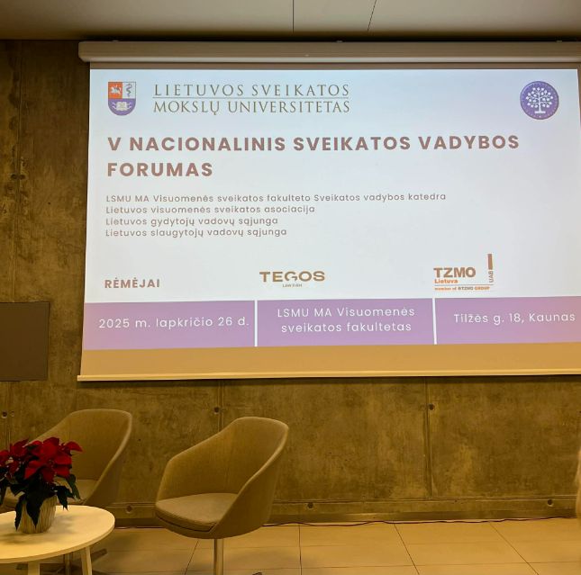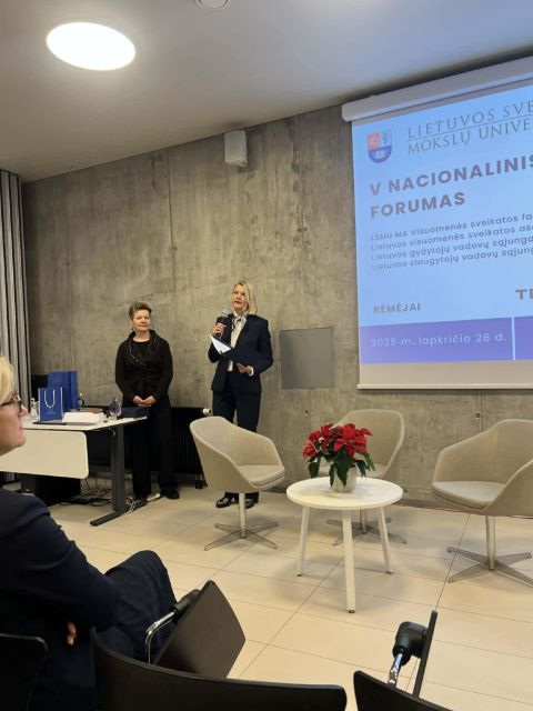 2025 m. lapkričio 26 d. Lietuvos sveikatos mokslų universiteto Visuomenės sveikatos fakulteto V-ajame Nacionaliniame sveikatos vadybos forume buvo įteikti Lietuvos visuomenės sveikatos asociacijos, Lietuvos gydytojų vadovų sąjungos ir Lietuvos slaugytojų vadovų sąjungos apdovanojimai.Nacionalinis sveikatos vadybos forumas kasmet suburia vis platesnį profesionalų ratą ir tampa svarbia tradicija Lietuvos sveikatos sistemos bendruomenei. Šiemet diskutuota apie strateginį sveikatos priežiūros planavimą, sistemos tvarumą, finansinius ir vadybinius iššūkius bei tarptautinę patirtį. Aptarti teisės aktų stabilumo, visuomenės sveikatos stiprinimo, lyderystės bei organizacijų strateginio valdymo klausimai, skatinantys efektyvesnį visos sistemos veikimą.